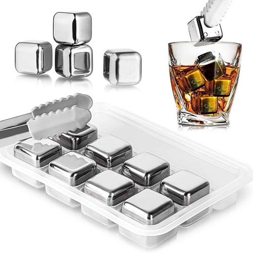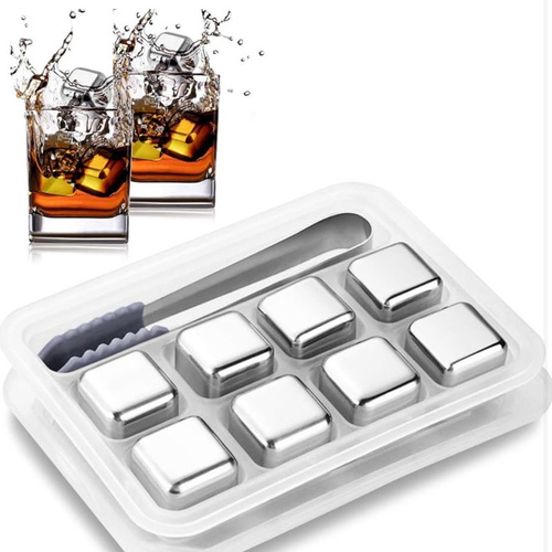 یخ های مکعبی استیل بروز ترین طراحی و جدید ترین نوع ابزار برای خنک نمودن انواع مایعات و نوشیدنی می باشد،یخ های مکعبی نمونه های کوچکی با جنس استیل ضد زنگ می باشند که با قرار گرفتن در یخچال به سرعت سرد شده و هنگامی که آن را داخل مایعات بیاندازید سریعا آن را خنک کرده و یک نوشیدنی خنک گوارا تحویل شما می دهد.یخ های استیل به گونه ای طراحی و تولید شده اند که در زمانی تقریبا 1 ساعت درون یخچال کاملا سرد و یخ می شوند و هنگامی که آن را داخل لیوان نوشیدنی انداختید در مدت زمان 3 دقیقه نوشیدنی خنک و گوارایی به شما تحویل می دهند.بزرگترین ویژگی و مزیتی که این یخ ها دارند این است که هیچ بوی نامطبوع و مزه ای در نوشیدنی شما ایجاد نمی کنند و کاملا بدون بو و مزه می باشند. این تکه یخ های استیل با کارایی فوق العاده ای که دارند می توانند بهترین جایگزین یخ های آبی شده و در مصرف و صرفه جویی آب نیز کمک شایانی داشته باشند.با داشتن این تکه یخ های استیل دیگر خیالتان برای همیشه از داشتن نوشیدنی سرد و گوارا در هر زمان راحت می باشد. استفاده از یخ های قالبی و حتی یخ های ساخته شده توسط یخچال ساید، به این دلیل که یخ در نوشیدنی ذوب میگردد سبب بی مزه شدن نوشیدنی میشود، ولی با استفاده از این قالب یخ استیل مکعبی هیچ بوی نامطبوع و مزه ای در نوشیدنی شما ایجاد نمی شود، زیرا به هیچ عنوان مایع درون قالب یخ با نوشیدنی در تماس نیست .