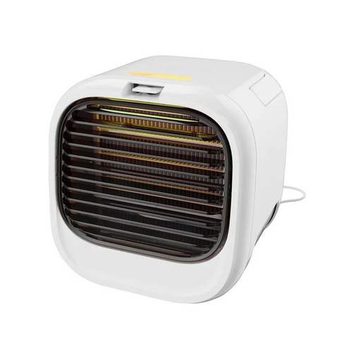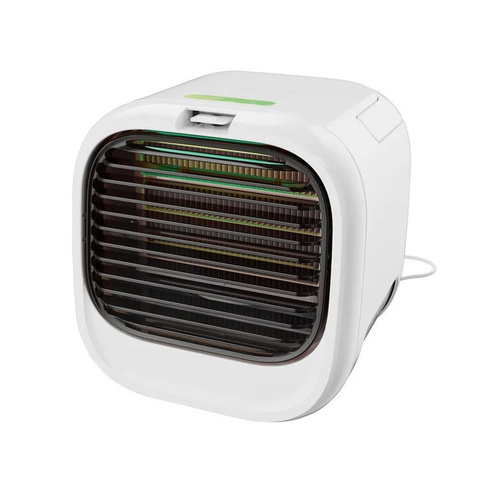 این دستگاه محصول شرکت silvercrest آلمان یک کولر قابل حمل است که با شارژر ها و یا پاوربانک های معمول و یا کابل USB تایپ C، قابل استفاده است (فاقد باتری داخلی بوده و باید به منبع برق (لپتاپ/پاوربانک/یو.اس.بی/برق) وصل باشد). مکانیسم خنک کنندگی تبخیری بوده و از یک فن کم مصرف و برگه های سلولوزی بهره می برد که از این نظر عملکردی مشابه با کولرهای سلولزی معمول اما در ابعادی کوچک و قابل حمل دارد. تنظیمات دستگاه شامل تنظیم شدت باد در 3 درجه و رنگ قابل انتخاب برای نور ملایم دستگاه است. میزان عملکرد با تانکر پر و شدت باد متوسط حدود 7 ساعت است. گنجایش مخزن آب حدود 700 میلی لیتر است. میزان صدای دستگاه باتوجه به بهینه فن، هنگام خواب به هیچ عنوان آزاردهنده نیست. دستگاه صرفاً بصورت مستقیم پرتاب باد دارد اما درچه را میتوان برای تغییر زاویه بالا یا پایین کرد که از این نظر برای استفاده روی میز کار، چادرهای کوچک و فضاهای محدود مناسب است؛ همچنین در پاییز و زمستان با خشک شدن هوا، می توان برای مرطوب یا خنک نگه داشتن محیط گیاهان خانگی حساس از آن استفاده کرد. اگر کلا قصد استفاده از قابلیت خنک کنندگی ندارید، می توان در مخزن آن اکالیپتوس و مواد معطر ریخت تا فضا را خوشبو کند.