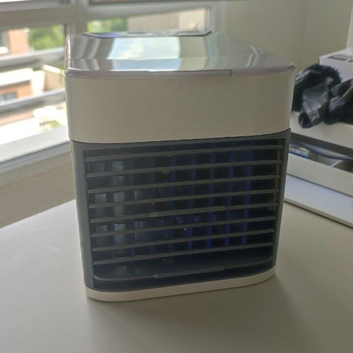 کولر آبی رومیزی یک کولر قابل حمل با خروجی باد حدودا 3 الی 5 مترک که همراه با کاهش دمای متوسط (حدود 4 تا 8 درجه خنک تر از محیط) است این دستگاه با انواع پاور بانک و آداپتور سازگار است. مکانیسم خنک کنندگی تبخیری بوده و از یک فن کم مصرف و برگه های سلولوزی بهره می برد که از این نظر عملکردی مشابه با کولرهای سلولزی معمول اما در ابعادی کوچک و قابل حمل دارد. تنظیمات دستگاه شامل تنظیم شدت باد در 3 درجه و رنگ قابل انتخاب برای نور ملایم دستگاه است. گنجایش مخزن آب حدود 700 میلی لیتر است. میزان صدای دستگاه باتوجه به بهینه فن، هنگام خواب آزاردهنده نیست. دستگاه قابلیت تنظیم جهت پخش باد دارد از این نظر برای استفاده روی میز کار، چادرهای کوچک و فضاهای محدود بسیار مناسب است؛ همچنین در پاییز و زمستان با خشک شدن هوا، می توان برای مرطوب یا خنک نگه داشتن محیط گیاهان خانگی حساس از آن استفاده کرد. اگر کلا قصد استفاده از قابلیت خنک کنندگی ندارید، می توان در مخزن آن اکالیپتوس و مواد معطر ریخت تا فضا را خوشبو کند.