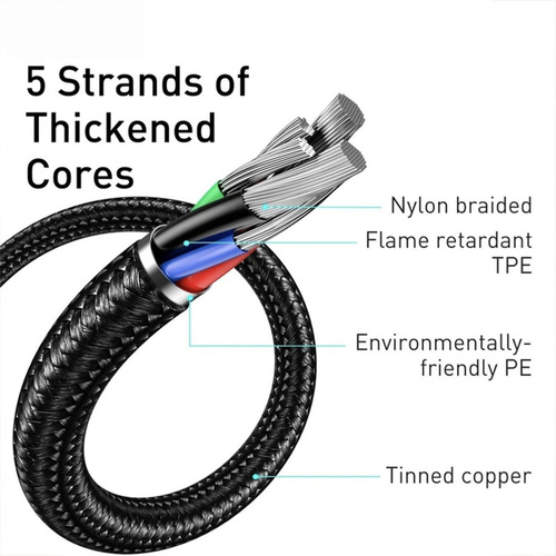 نظرتان چیست که هر زمان خواستید بتوانید توان ورودی به گوشیتان را چک کنید؟ کابل شارژ تایپ سی بیسوس Baseus Display Fast Charging Data Cable USB to Type C این کار را برایتان انجام میدهد. کانکتور تایپ سی این کابل دارای یک نمایشگر است که که میتواند توان آنی گوشی را نمایش دهد. بالاترین شدت جریان این کابل 6A بوده و دارای چیپ های هوشمند است تا به گوشی آسیبی وارد نشود. انتقال توان و دیتا بیشترین توان قابل انتقال توسط کابل شارژ تایپ سی بیسوس Display برابر با 66W است که فست محسوب میشود. به طور مثال شما میتوانید گوشی های هواوی و شیائومی را با سرعت زیر شارژ کنید: گوشی Mate 30 هواوی در عرض 30 دقیه 70 درصد شارژ خواهد شد. گوشی Mi 10 شیائومی نیز با این کابل در عرض 30 دقیقه تا 60 درصد شارژ میشود. این کابل علاوه بر این میتواند گزینه مناسبی برای انتقال داده به کامپیوتر و لپ تاپ هم باشد. سرعت انتقال داده در این حالت 480Mbps خواهد بود که سرعت مناسب و مطلوبی است. چیپ هوشمند یک چیپ هوشمند نیز در کانکتور کابل به کار رفته که از گوشی و کابل در برابر شارژ بیش از حد و داغ شدن محافظت میکند. زمانی که شب ها گوشی را در شارژ میگذارید و میخوابید خطر شارژ بیش از حد را به گوشی تحمیل میکنید. اما کابل شارژ Type C بیسوس Display راه کار دیگری برای حل این مشکل دارد. به این ترتیب زمانی که باتری کامل شود ولی کانکتور هنوز به گوشی وصل باشد، چیپ هوشمند وارد مود Trickle Charging خواهد شد. به این معنی که میزان شدت جریان عبوری به دستگاه بسیار کم و تقریبا صفر میشود تا باتری آسیبی نبیند. کابل بلند 2 متری سیم کابل شارژ تایپ سی بیسوس با یک روکش بافته شده پلاستیکی پوشانده شده تا دوام بیشتری داشته باشد و مثل کابلهای TPE به راحتی پاره نشود. کانکتورهای آن هم با طراحی SR تقویت شدهاند تا بر اثر خمش آسیبی نبینند. همانطور که گفتیم طول این کابل 2 متر است و انتظار میرود که بیشتر نیازهای روزمرهتان را پاسخ دهد. 5 دسته رشته سیم های مسی داخل این کابل به کار رفته که به وسیله روکشهای محافظتی TPE و PE پوشانده شدهاند. این رشتهها شدت جریان را پایدار تر میکنند تا با سرعت بالاتری گوشی را شارژ کنید.