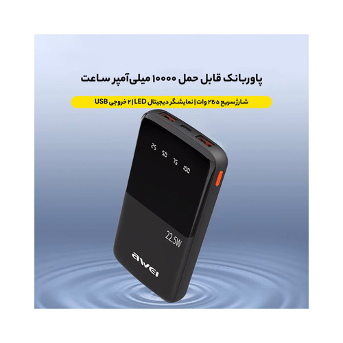 پاوربانک فست شارژ اوی مدل P10K با ظرفیت 10000 میلی آمپر و شارژ سریع 22.5 وات، همراهی ایدهآل برای گوشی و تبلت در سفر و روزمره است.