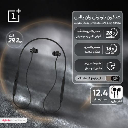 هدفون بلوتوثی مدل Bullets Wireless Z2 ANC E306A یک محصول با کیفیت و با طراحی زیبا از برند وان پلاس است. این محصول با قابلیت اتصال بیسیم توسط بلوتوث امکان گوش دادن به موسیقی و پاسخ دادن تماس را برای شما فراهم میکند. هدفون بلوتوثی مدل Bullets Wireless Z2 ANC دارای شعاع عملکرد 10 متری است و در فضای باز تا ده متر امکان اتصال بدون مشکل را به بلوتوث گوشی شما را فراهم میکند. برای این هدفون یک باتری با ظرفیتی 220 میلیآمپرساعت در نظر گرفته شده که میتواند امکان گوش دادن به موسیقی را تا 28 ساعت برایتان ممکن میکند. یکی از مهمترین ویژگیهای این هندزفری وان پلاس وزن سبک و طراحی ارگونومیک آن است. طراحی ارگونومیک این مدل باعث راحتی شما در هنگام گوش دادن به موسیقی شود. از این مدل میتوان حتی در هنگام ورزش هم استفاده کرد. طراحی بدون سیم این محصول این امکان را به شما میدهد تا در هنگام انجام فعالیتهای متفاوت از این هندزفری استفاده کنید. هدفون بلوتوثی مدل Bullets Wireless Z2 ANC E306A به قابلیت ANC هم مجهز است که در هنگام مکالمه صدای مزاحم را حذف میکند.